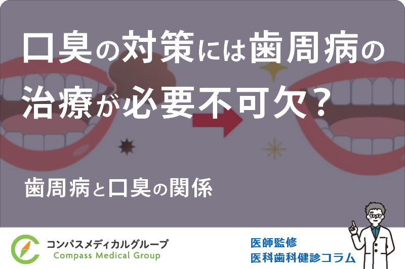 歯周病は歯と歯茎の間に食べカスが付着し、細菌の巣となる歯垢が生み出され、様々な症状を引き起こす病気です。口臭もそのひとつであり、歯周病と口臭は切っても切れない深い因果関係が存在します。